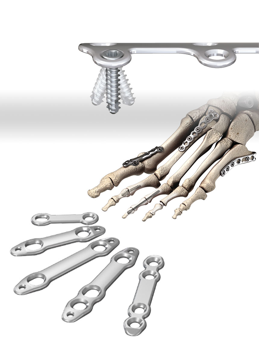 OsteoMed proporciona al cirujano de extremidades inferiores una oferta completa de soluciones para diversas indicaciones. Ofrecemos múltiples opciones de tornillos, una variedad de placas e implantes para aplicaciones específicas para las deformidades del pie. Para Hallux Rigidus y Limitus, nuestra oferta es una de las más completas del mercado y le brinda la capacidad de dar forma a su tratamiento de acuerdo con las necesidades de sus pacientes.